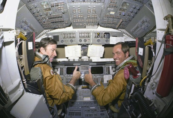 Le 12 avril 1981, 2 hommes se trouvent à bord de la Navette Spatiale Columbia pour son vol inaugural : John W. Young et Robert L. Crippen.