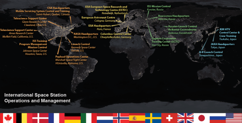 L’ISS est un effort de collaboration de 15 pays dont les principales agences spatiales : NASA 🇺🇸, Roscosmos 🇷🇺, ESA, JAXA 🇯🇵 et ASC 🇨🇦.