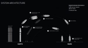 Depuis des années, Musk répète que son but ultime est d’aller sur la planète rouge. Avec son « Interplanetary Transport System » (système de transport interplanétaire), Musk, avec SpaceX, veut envoyer des centaines de personnes sur Mars avec un lanceur beaucoup plus puissant que la Saturne 5. Il veut réussir plusieurs objectifs à la fois : créer sur Mars une ville « autonome », une civilisation indépendante d’un million de personnes et réduire le coût du vol à destination de la planète rouge.