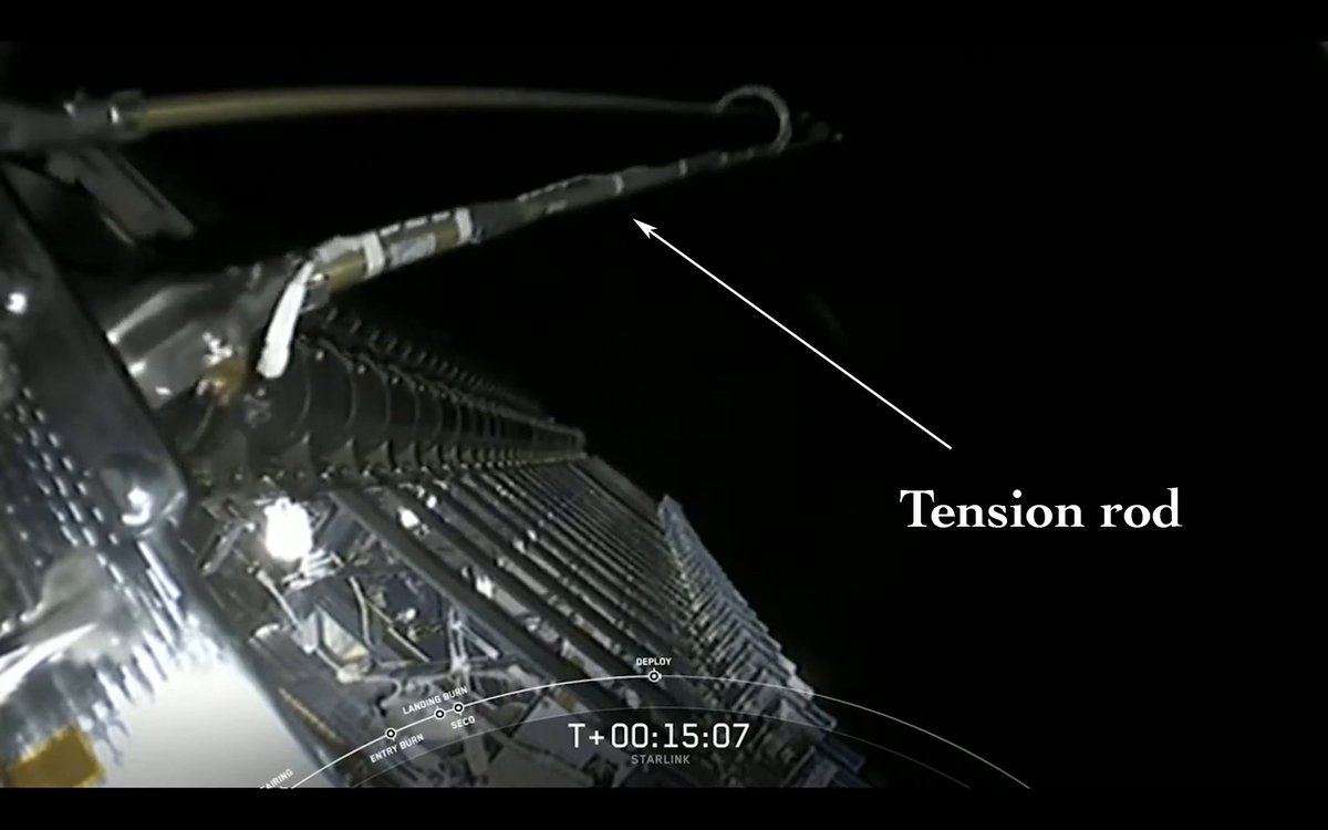 Le 25 novembre, il y a eu un rapprochement d’un débris à environ 5,5 km de l’ISS. Il s’agit d’une bride de maintien (ou « tension rod ») des satellites Starlink éjectée lors de la séparation des premiers satellites en mai 2019.