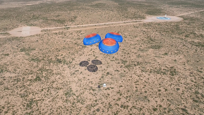 Les ingénieurs de Blue Origin voulaient savoir si les propulseurs du système de contrôle de la réaction (RCS) de la capsule pouvaient stabiliser l’engin spatial dans l’environnement spatial et cela semble réussi. Après environ 11 minutes de vol, la capsule est retournée sur Terre sous parachutes.