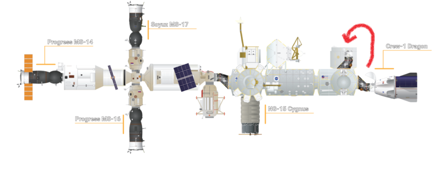 L’équipage de Crew 1 avait pris place à bord au cas où l’amarrage n’aurait pas pu avoir lieu, et donc pour un retour sur Terre prématuré.