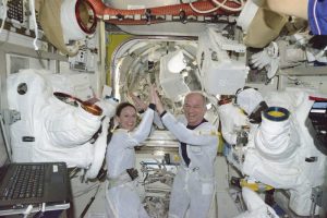 Pour mémoire, les 12 femmes qui ont fait à ce jour des EVA (sur les 60 qui sont allées dans l’espace) sont Svetlana Ye. Savitskaya et Kathryn D. Sullivan en 1984, Kathryn C. Thornton en 1993, Linda M. Godwin et Tamara E. Jernigan en 1996, Susan J. Helms en 2001, Peggy A. Whitson en 2002, Heidemarie M. Stefanyshyn-Piper et Sunita L. Williams en 2006, Nicole M. P. Stott en 2009, Tracy E. Caldwell-Dyson en 2010 et Kathleen H. Rubins en 2016 (seule l’année de leur 1ère EVA étant mentionnée).