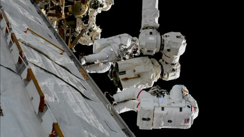 La première s’est déroulée sans problème ce 5 octobre. Randy Bresnik et Mark Vande Heide ont réalisé une EVA de presque 7 heures pour remplacer l’un des 2 effecteurs de verrouillage (Latching End Effectors, LEE) du bras robotique de la Station.