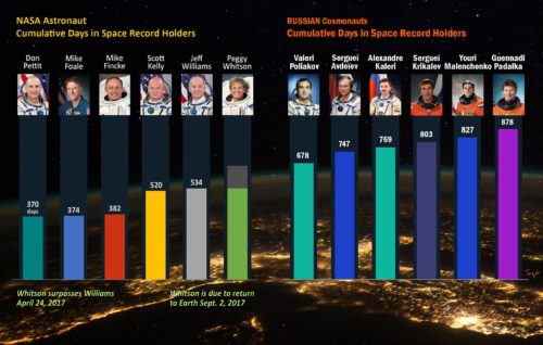 Le record de Pegyy Whitson comparé aux durées des cosmonautes russes en avril 2017 (credit Tezio)