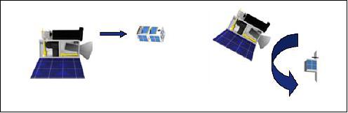 RemoveDEBRIS en fait 3 satellites en 1 : RemoveSAT, le vaisseau porteur et deux DebrisSAT, 2 cubesats 2U.