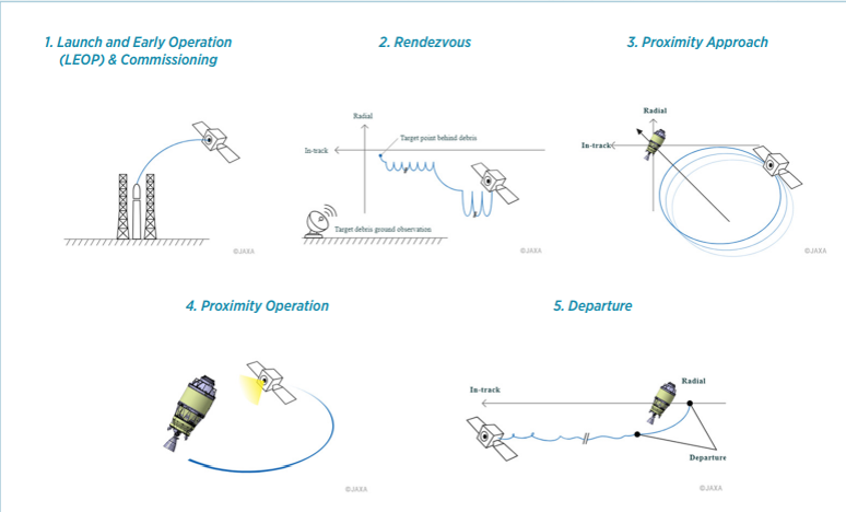 Dès le 22 février la phase de rendez-vous avec sa cible a commencé pour ADRAS-J. Le 9 avril, la phase d’approche a débuté.