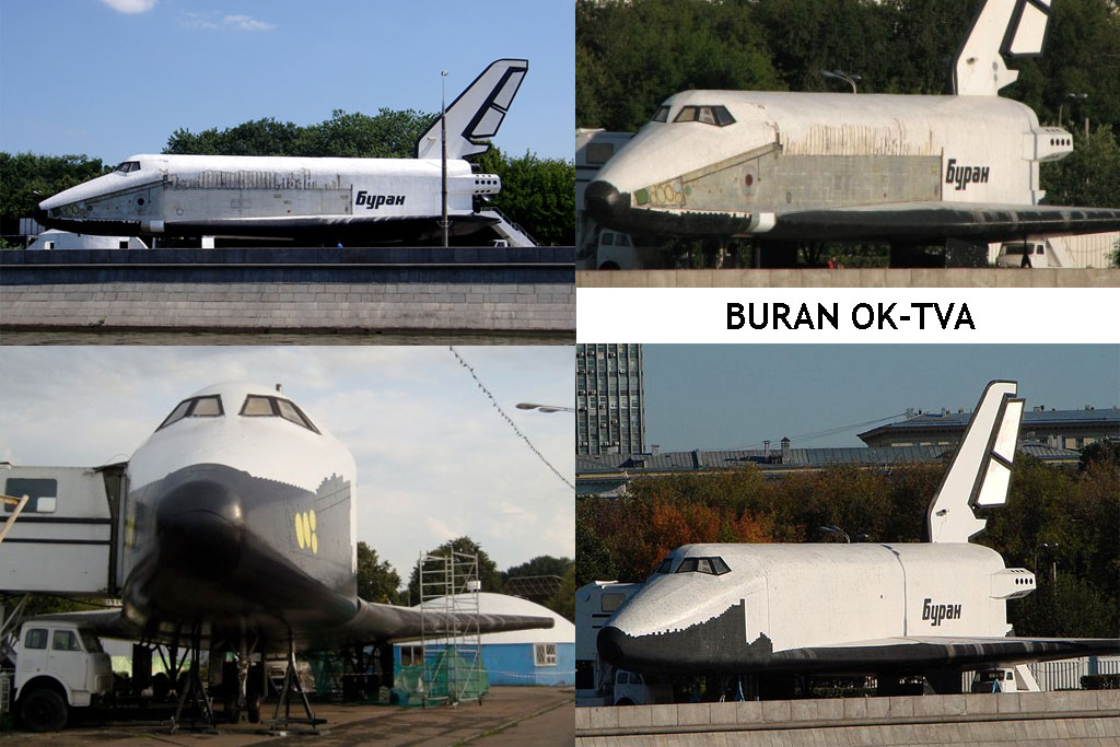 Buran, modèle de tests thermiques et mécaniques. Le corps central est exposé à Moscou (montage de Lee Brandon-Cremer)