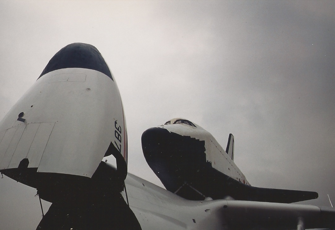 En 1988, la navette russe Buran est visible sur le dos de son avion de transport An 225 Mriya au Salon du Bourget (photo personnelle)