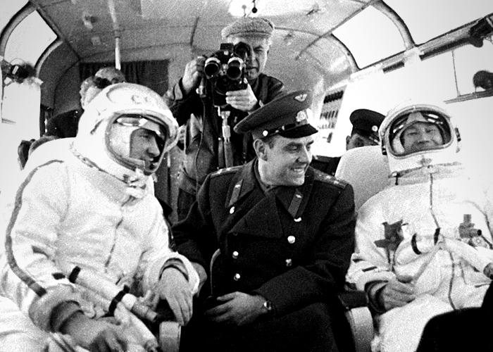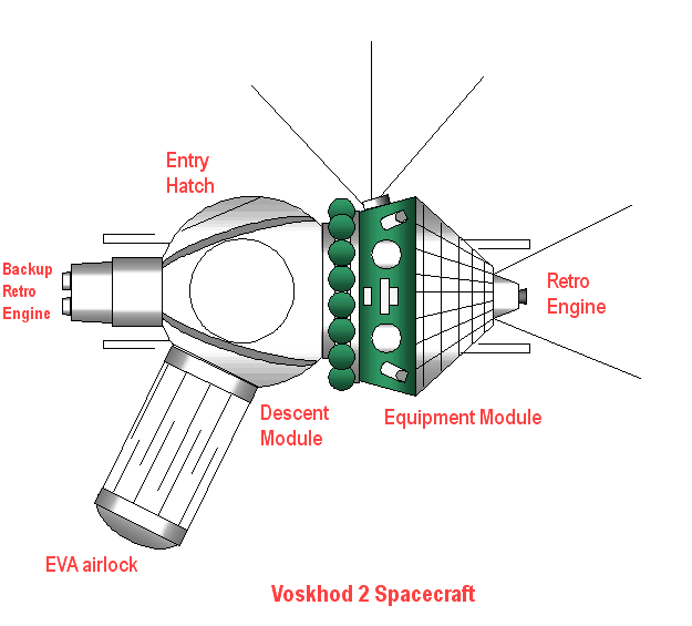 Voskhod 2 (lever de soleil en russe), est un vaisseau avec un équipage de 2 personnes, un commandant et pilote, Pavel Belyayev et un navigateur, Alexei Leonov.