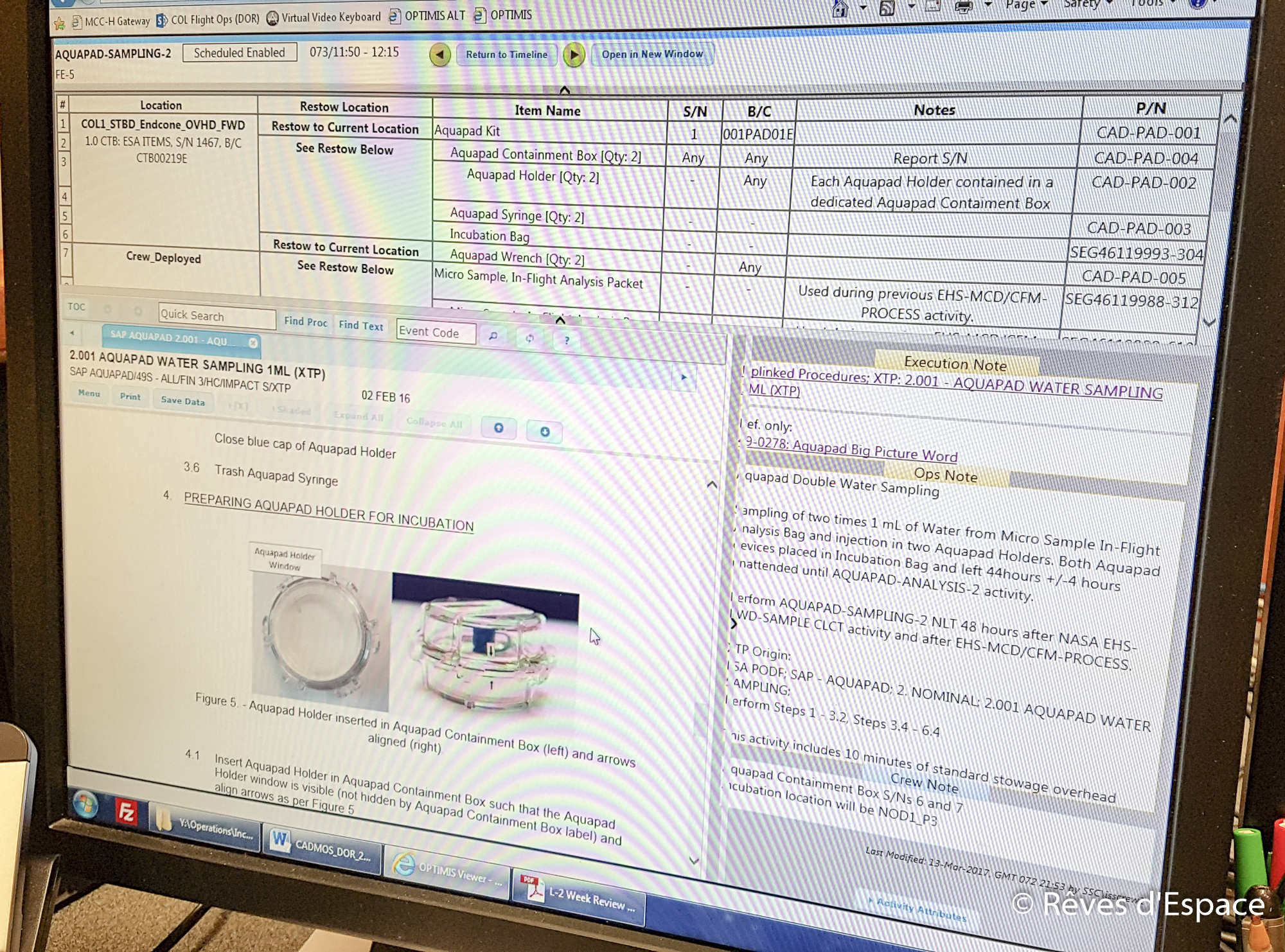 Lorsque je me suis rendue au CADMOS pour voir cette opération en direct pour Aquapad, c’était Thomas Pesquet qui a effectué l’analyse. Mais Peggy Whitson réalise aussi l’expérience. Et un autre astronaute prendra la relève après leur départ de l’ISS.