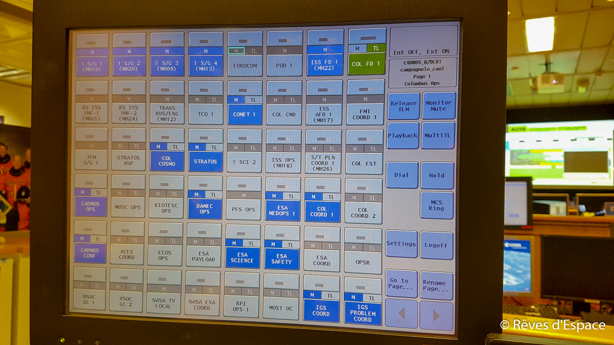 Le CFD donne ensuite les Go et No Go à l’Eurocom (European Spacecraft Communicator), situé lui à l’EAC (European Astronaut Centre) à Cologne, qui assure la communication avec l’astronaute dans l’ISS, sous la surveillance du Centre de Contrôle de Houston.