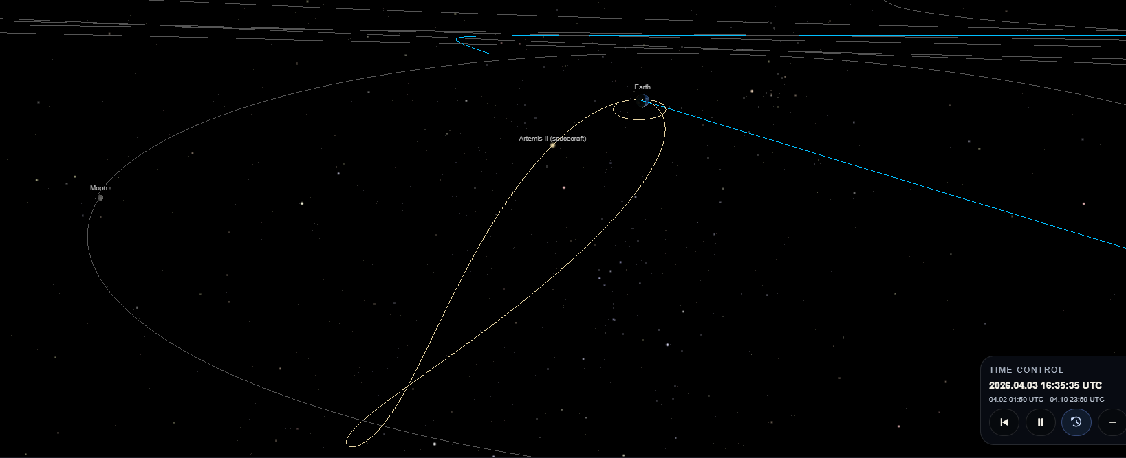 Le vaisseau s’éloigne actuellement de la Terre. Pour visualiser la trajectoire : https://lizard-tail.com/isana/orbgraph/?preset=artemis2