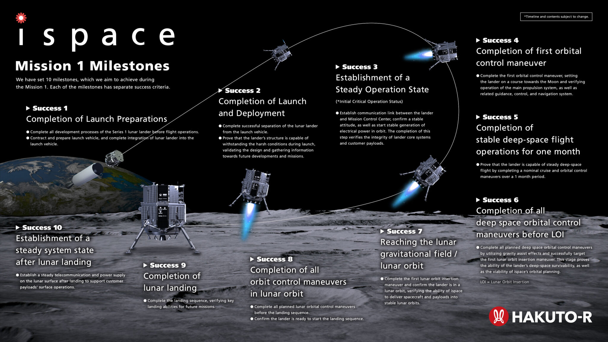 Ispace est une entreprise japonaise d’environ 200 personnes implantée également au Luxembourg et aux Etats-Unis. Son activité est centrée sur le développement d’un service de transport à haute fréquence vers et depuis la surface lunaire, pour « construire un monde durable qui utilise les ressources spatiales et fait de la Terre et de la Lune un écosystème unique« . En 2018, ispace a rejoint une équipe dirigée par Draper qui a été sélectionnée par la NASA pour participer à son programme de services de charge utile lunaire commerciale (CLPS – Commercial Lunar Payload Services). Ispace a également répondu à l’appel d’offres de la NASA pour des missions de collectes d’échantillons sur le sol lunaire dans le cadre du programme Artemis.
