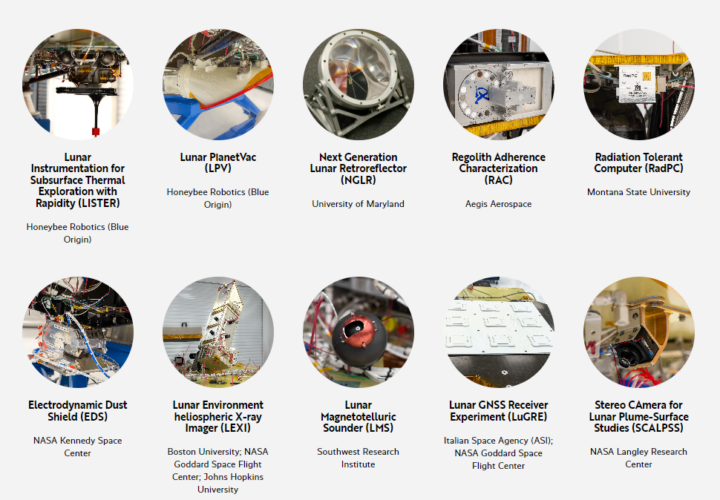 Pour cette première mission, BGM1 (Blue Ghost Mission 1), il y a 12 charges utiles à bord dont 10 pour la NASA.