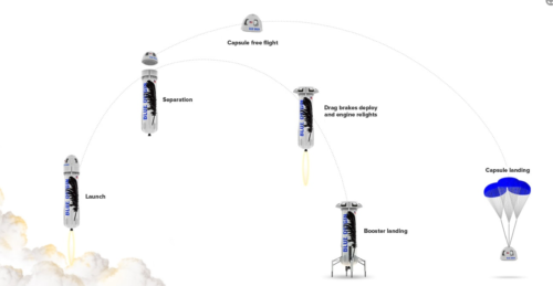 Blue Origin fondée par le milliardaire Jeff Bezos vient en effet de passer une nouvelle étape avec le septième lancement réussi d’une capsule. Le dernier essai avait eu lieu en octobre 2016 [lire Blue Origin : test d’éjection d’urgence réussi ]