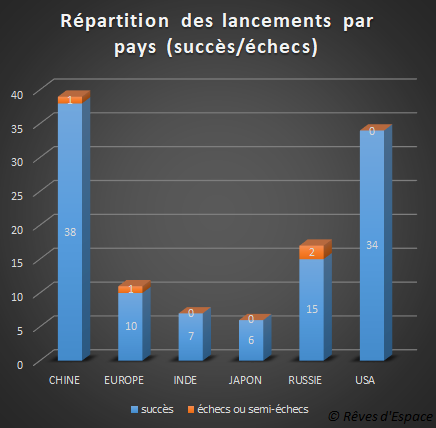 La Chine devient la première nation entant que nombre de lancements pour la première fois de l’histoire spatiale !