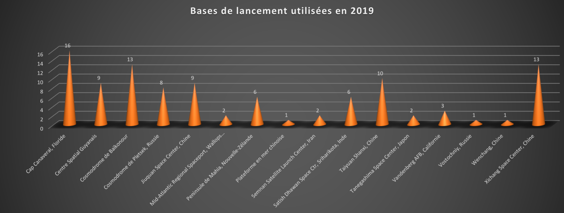 La base chinoise de Xichang et le Cosmodrome de Baïkonour sont également très actifs mais sont moins faciles d’accès.