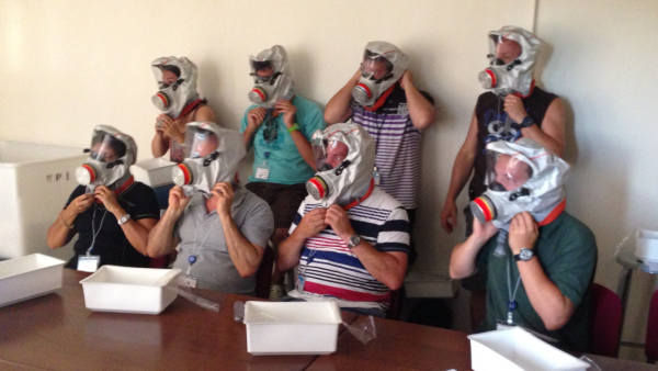 mes collègues lors de l'entrainement des masques à gaz (source GAIA blog)