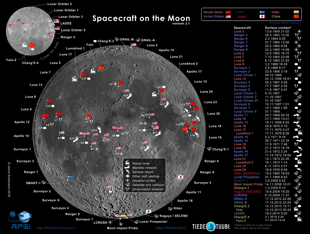 Dans le récapitulatif des missions lunaires, rajouter les missions Apollo 8, 10 et 13 ainsi que plusieurs échecs de Luna.