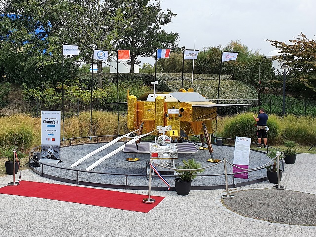 Après une réplique du Module Lunaire LM de la mission Apollo 11, la Cité de l’espace de Toulouse accueille un nouvel objet exceptionnel : la maquette en taille réelle de la sonde chinoise lunaire CHANG’E-4, avec son rover YUTU-2, offerte par la China Aerospace Science and technology Corporation (CASC).
