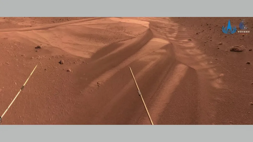 Une dune photographiée par le rover Zhurong avant d’entrer en hibernation en mai 2022 (crédit : CNSA / PEC)