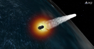Cela correspond à une altitude d’environ 80 km (donc, en gros, à 10 minutes d’un contact avec le sol). Cela aurait été le moment où l’objet a été le plus chaud et donc visible depuis l’espace.Ce temps correspond également à un emplacement de 51 degrés de latitude sud et 273 degrés de longitude est, sur l’océan à l’ouest de la pointe sud de la côte du Chili. (source blog ESA)