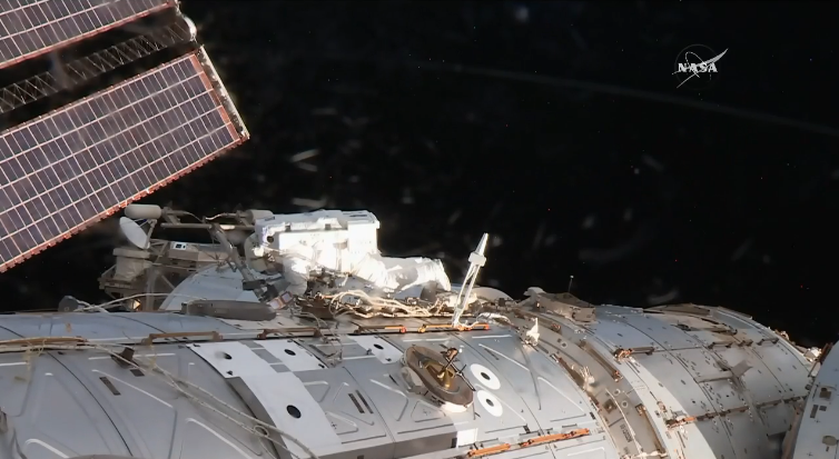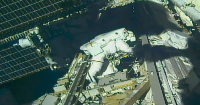 L’EVA a débuté officiellement à 11h20 UTC avec la sortie des 2 astronautes du sas Quest de l’ISS.
