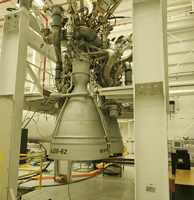 Deux moteurs AJ26 avant leur fixation sur le premier étage d’un lanceur Antares (Credit: Stephen Clark/Spaceflight Now)