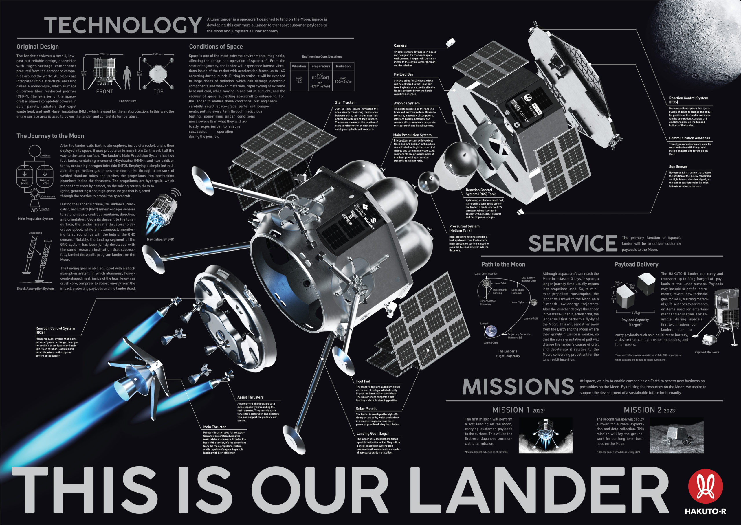Hakuto signifie le lapin blanc en japonais. Dans le folklore légendaire au Japon, on dit qu’un lapin blanc vit sur la Lune. Hakuto-R avec le R pour Reboot, est la suite d’un projet de rover lunaire du concours Google Lunar X-Prize qui devait envoyer un atterrisseur lunaire privé sur la Lune d’ici fin 2018 avant d’être annulé en mars 2018. ispace a redémarré le projet avec un atterrisseur avec le soutien de l’agence spatiale japonaise, la JAXA.