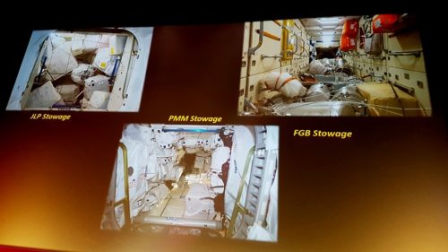 Dans l’ISS, la place pour le stockage des expériences et du matériel se fait rare au fur et à mesure des années, bien que chaque mètre carré de la Station soit utilisé et que des cargos embarquent généralement les poubelles de l’ISS lors de leur départ.