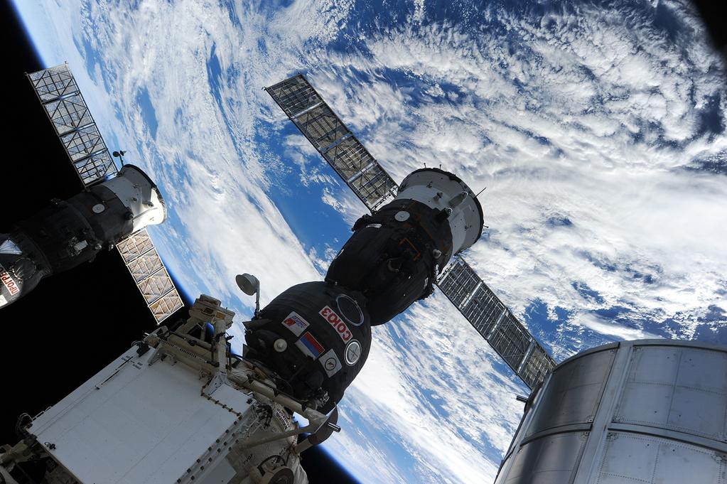 Le Soyouz TMA-15M a rejoint un autre Soyouz déjà amarré, ainsi que l’ATV 5 et un cargo Progress