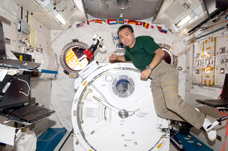 Kirobo et l’astronaute japonais Koichi Wakata à bord de l’ISS en 2013 (credit JAXA)