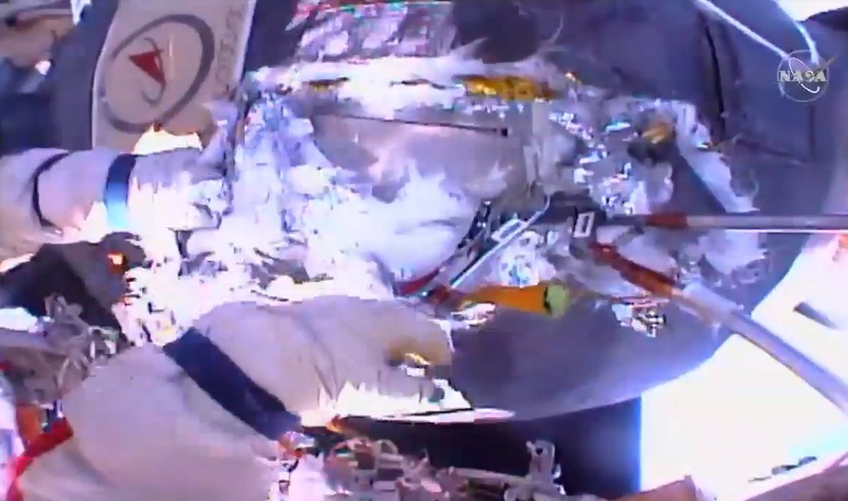 Ceux qui ont suivi comme moi la sortie spatiale en live (au moins cette partie) ont bien stressé sur cette étape à haut risque de l’EVA. En effet, toute déchirure du scaphandre Orlan du cosmonaute signait son arrêt de mort !
