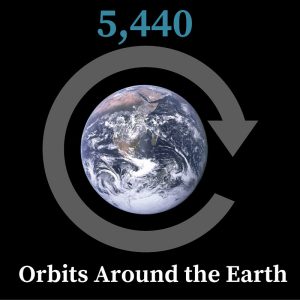 - 5440 orbites autour de la Terre, soit 231 498 542 kilomètres à 28 160 km/h