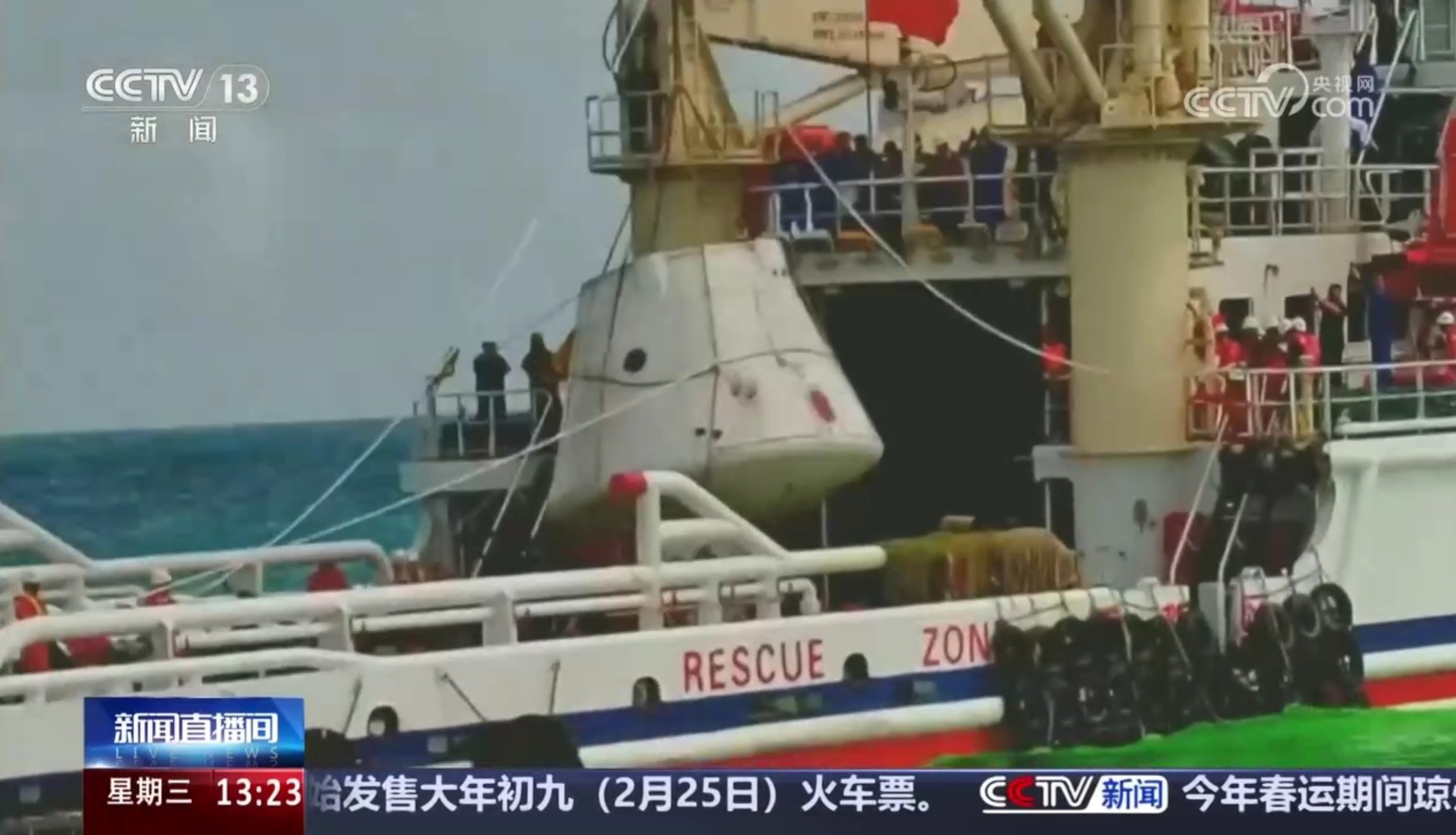 La capsule a été récupérée par un bateau. Cela simule aussi la récupération d’un équipage.