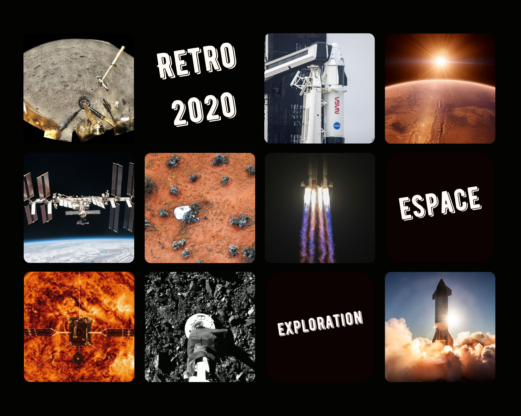 En attendant l’article sur ce que 2021 nous prépare côté spatial, j’ai fait plusieurs articles résumant 2020 (cliquez sur les images pour accéder aux articles) :