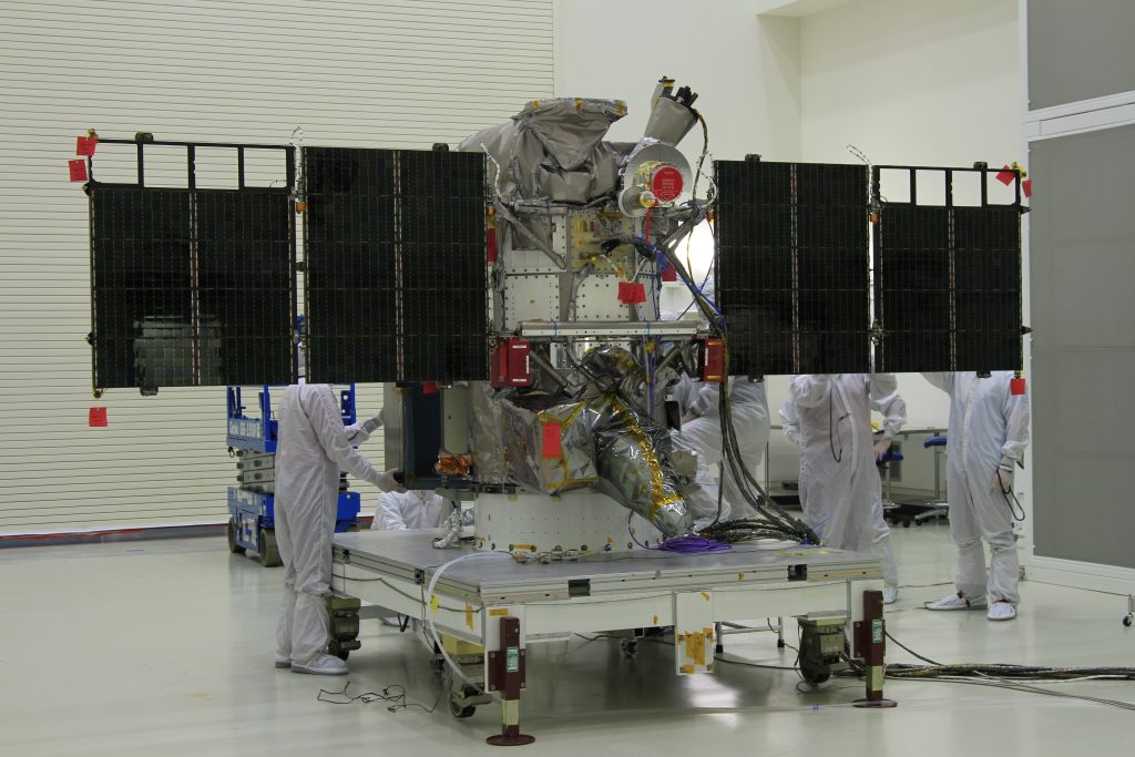 Les panneaux solaires sur DSCOVR de la NOAA, sont déployés dans le bâtiment Astrotech de traitement de la charge utile à Titusville, en Floride, près du Kennedy Space Center. (Crédit image: NASA / Ben Smegelsky)