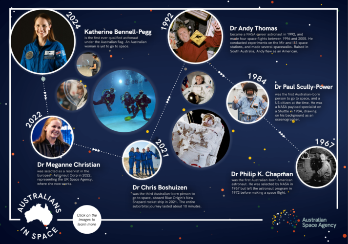 Les 5 candidats astronautes ont été rejoints en cours de formation par Catherine Bennell-Pegg de l’Agence spatiale australienne, qui a reçu son diplôme également. Elle pourrait devenir la première Australienne à voler sous le drapeau australien, après les astronautes Paul Scully-Power (1984), Andy Thomas (1996,1998, 2001,2005), Chris Boshuizen (vol suborbital 2021) nés en Australie mais ayant volé sous la bannière américaine.