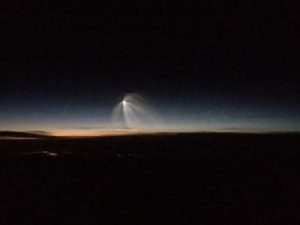 Quelques jours après, les pilotes Michael Schwarz et Frank Barma de la compagnie allemande Lufthansa ont publié 2 superbes photos de ce décollage vu de leur cockpit d’avion; Le vol LH 713 se trouvait en vol de croisière à 8000 m d’altitude au-dessus de la Russie, approximativement à 100 km à l’st de Novosibirsk, à environ 2000 km de Baïkonour « à vol d’avion ».