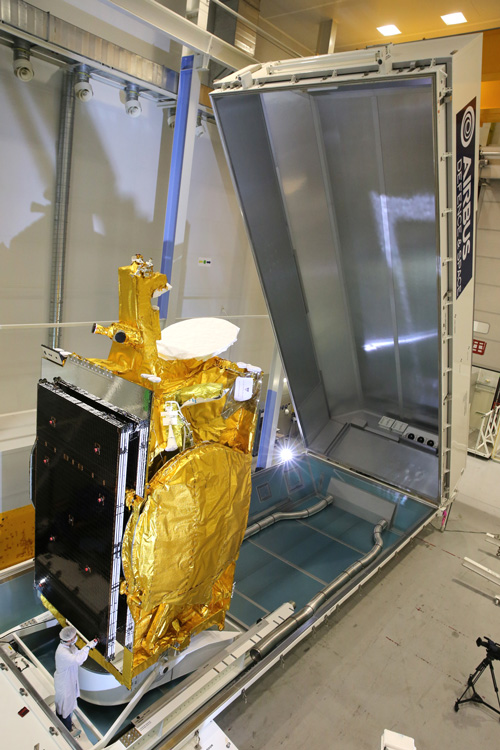 Le satellite Express AMU1 / Eutelsat 36C avant son expédition pour le lancement. (Crédit: Airbus Defense and Space)