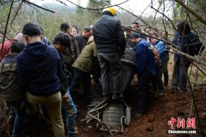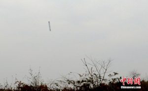 Fait rare, des photographes de Chine Nouvelle (Xinhuan), ont pris des photos de la chute du premier étage du lanceur, près du village de Gaopingsi, à environ 545 kilomètres du site de lancement, et les ont publiées. La plupart des étages de fusées chinoises finissent au sol en raison de l’utilisation de sites de lancement à l’intérieur du pays. Généralement, l’armée chinoise récupère les débris pour la mise à la casse.
