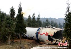 Aucune victime n’a été signalée à la suite de l’impact du premier étage et les images montrent l’épave dans une forêt, encore dégageant des fumées toxiques de propergol. Au lancement, l’étage de la fusée contient plus de 172 000 kg de carburant toxique. La long March 3A est seulement constituée d’un empilement de trois étages.