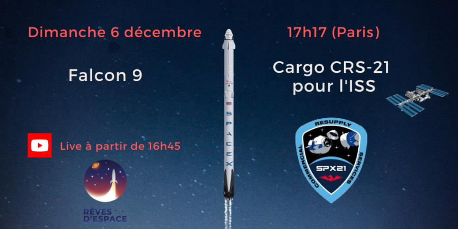 Aujourd’hui 6 décembre, une Falcon 9 a mis sur orbite le cargo de ravitaillement CRS-21 pour l’ISS. Il s’agit de … Lire la suite de Live : Lancement Falcon 9 / cargo Dragon CRS-21