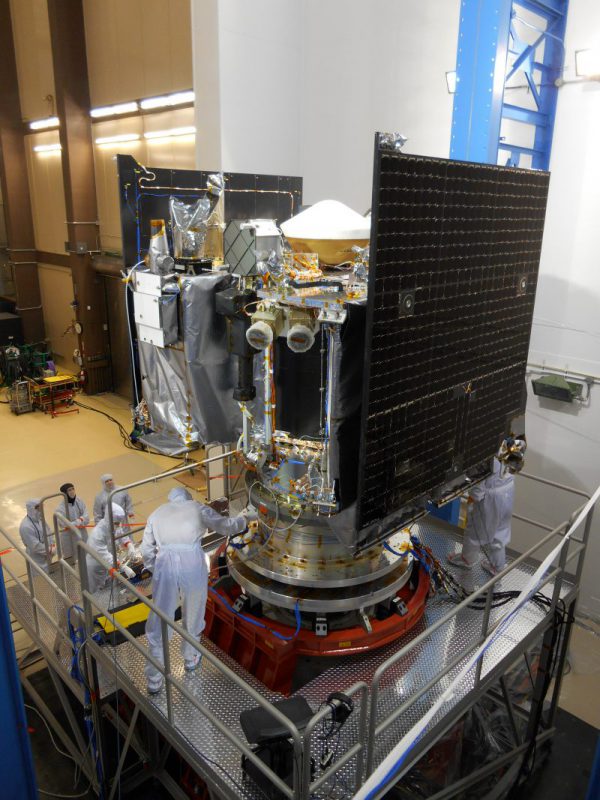 OSIRIS-REx en cours d’assemblage et de tests chez son constructeur Lockheed Martin (credits Lockheed Martin Corporation)