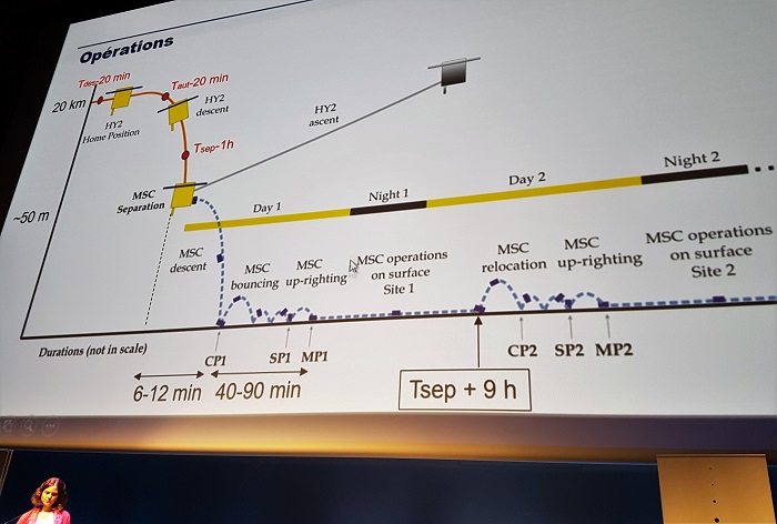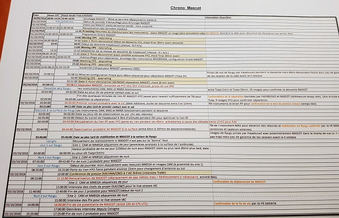 Tout était soigneusement planifié car les batteries non rechargeables de Mascot ont une autonomie limitée d’environ 16 heures depuis son largage. Il faut donc réaliser un maximum de sciences pendant ce laps de temps, soit pendant un peu plus de 2 jours « ryugien » qui font 7,5 heures.