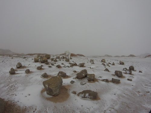 Le quatrième sol a été celui des éléments : premier jour de l’hiver et premières chutes de neige ! Cela faisait plusieurs jours que les services météo américains l’annonçaient et les nuages ont fini par leur donner raison. Nous nous étions couchés sur Mars la Rouge et voilà que nous sommes sur la moins connue Mars la Blanche. Je devais normalement rester dans le Hab et guider mes camarades par radio, à la recherche de cibles placées dans le désert la veille (une expérience sur la collaboration contrôle/astronaute) mais la neige ayant recouvert les cibles, c’était tout de suite devenu moins intéressant…