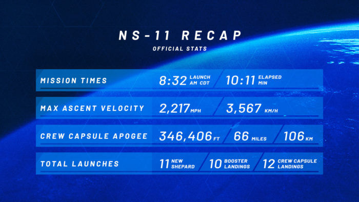 Statistiques du vol New Shepard 11 (credit Blue Origin)