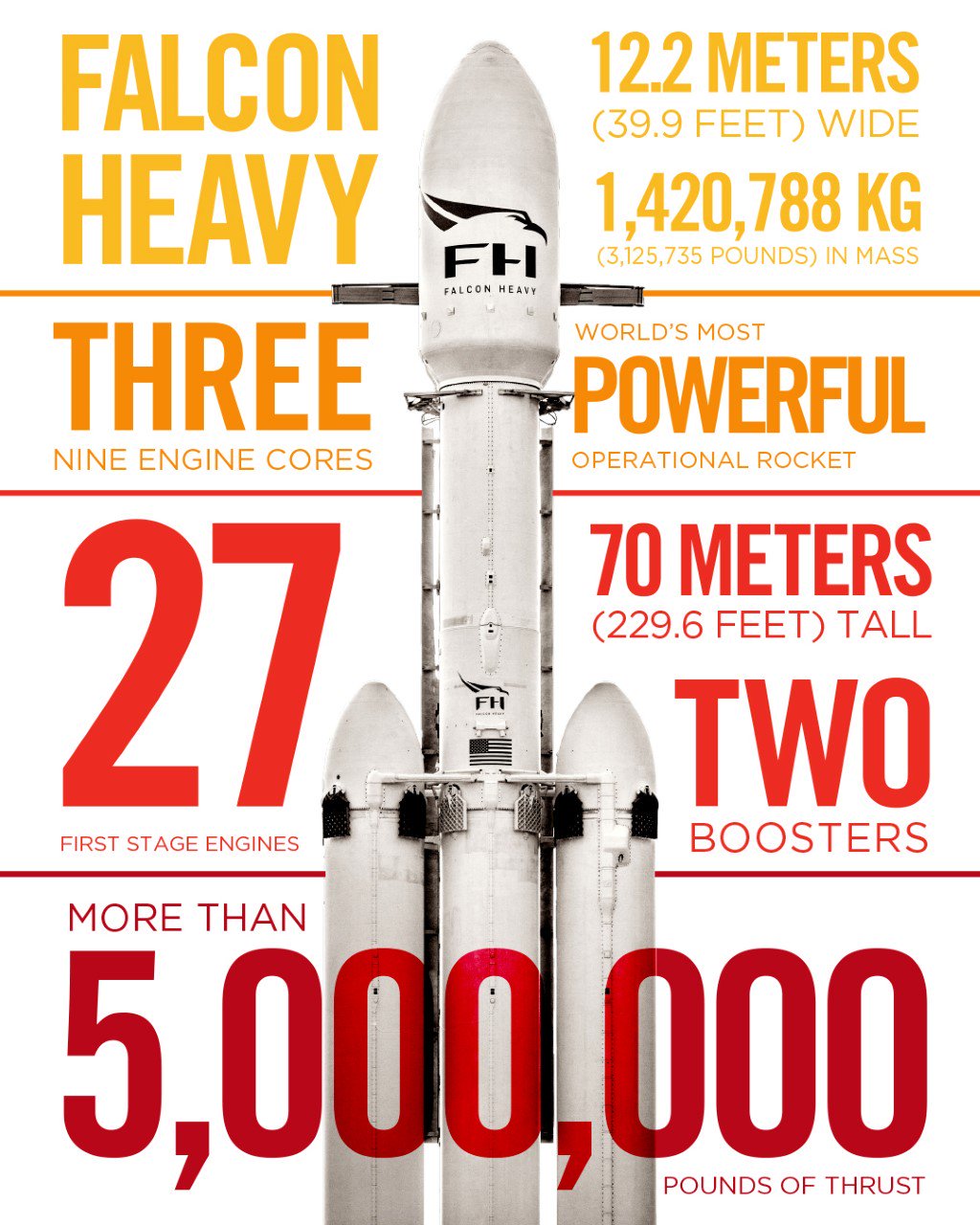 Lancements La Falcon Heavy par les chiffres 5 février 2018 Elon Musk, Falcon 9, Falcon Heavy, SpaceX 3 min read