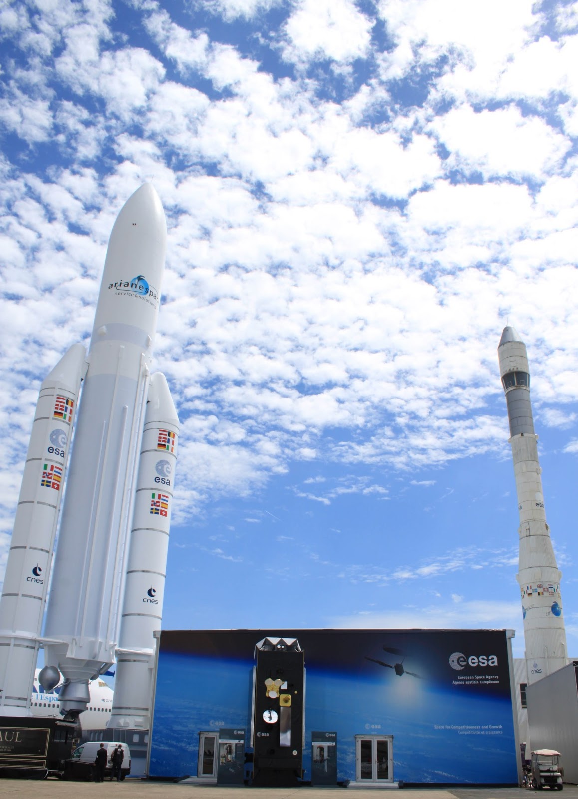 Le « Paris Air Show » a ouvert ses ailes ce 17 juin à l’aéroport du Bourget . Cette manifestation qui se déroule tous les 2 ans, n’est pas seulement la vitrine des constructeurs aéronautiques, mais on y trouve également les professionnels du Spatial : ESA, CNES, ASTRIUM, Thales Alenia Space, ….
